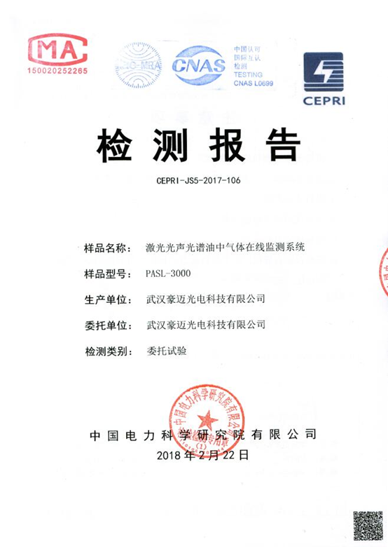 武漢豪邁光電科技有限公司傳來重大喜訊,公司研發(fā)的激光光聲光譜油中氣體在線監(jiān)測(cè)系統(tǒng)順利通過中國電科院試驗(yàn)檢測(cè),達(dá)到B級(jí)標(biāo)準(zhǔn),成功拿到準(zhǔn)入證。標(biāo)志著變壓器油氣測(cè)量進(jìn)入到激光檢測(cè)時(shí)代,具有跨時(shí)代的意義。
