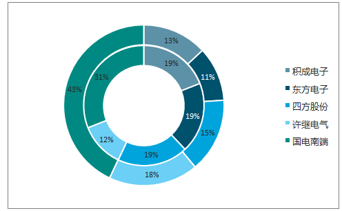 2016和2017年國(guó)電南瑞在主站系統(tǒng)市占率圖