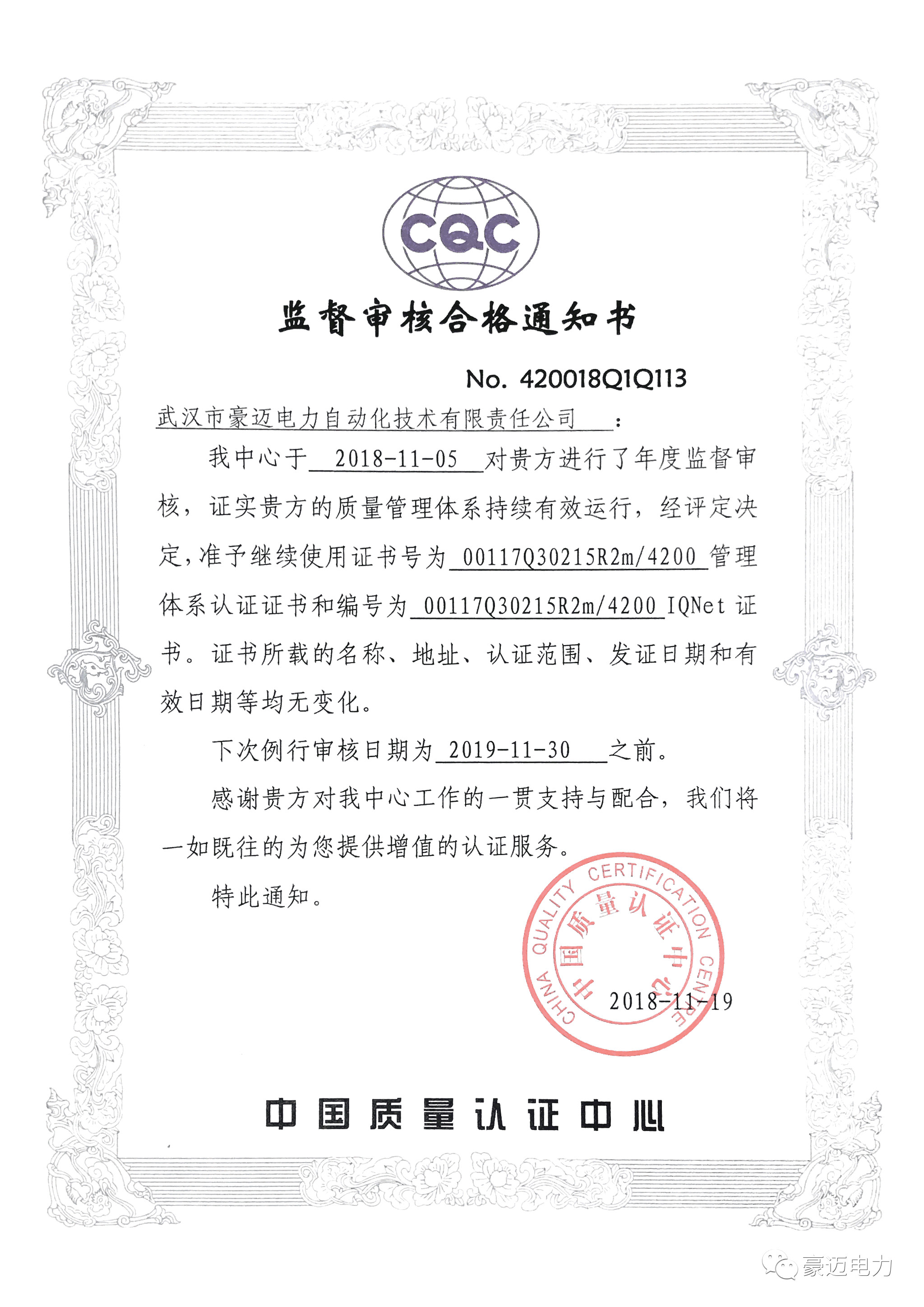 本月,中質(zhì)協(xié)質(zhì)量保證中心專家組蒞臨豪邁電力,進(jìn)行ISO9001、ISO14001、OHSAS18001三體系年度審核工作。