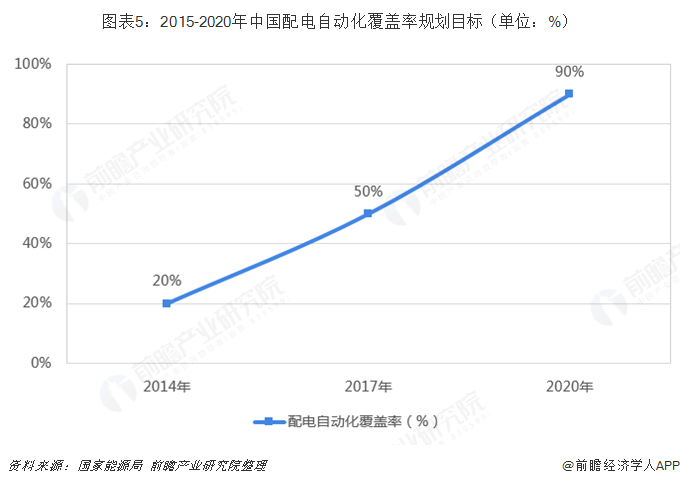 此外,根據(jù)我國(guó)頒布的《配電網(wǎng)建設(shè)改造行動(dòng)計(jì)劃(2015-2020年)》,文件明確配電網(wǎng)的自動(dòng)化對(duì)于提高供電可靠性至關(guān)重要,是未來(lái)電力自動(dòng)化發(fā)展的關(guān)鍵之一。同時(shí),《規(guī)劃》明確提出2020年中國(guó)配電自動(dòng)化覆蓋率要達(dá)到90%;同時(shí),根據(jù)“十三五”規(guī)劃,也提到要在2020年全面實(shí)現(xiàn)配電自動(dòng)化覆蓋90%的目標(biāo),其中東部地區(qū)?。▍^(qū)、市)公司配電自動(dòng)化覆蓋率不低于95%,中西部地區(qū)?。▍^(qū)、市)公司配電自動(dòng)化覆蓋率不低于90%。但是,截至目前,已建成的配電自動(dòng)化項(xiàng)目覆蓋率與2020年目標(biāo)相差甚遠(yuǎn),未來(lái)還有極大地提高空間,將是電力自動(dòng)化的發(fā)展重點(diǎn)。