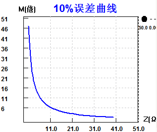 上述過程均由測(cè)試儀軟件實(shí)現(xiàn),并繪制誤差曲線反映出該CT自身特性。根據(jù)CT 的10%誤差曲線,我們還必須查閱流經(jīng)該CT 的最大短路電流和該CT 二次側(cè)所帶回路的阻抗 Z 。最大短路電流通常在整定計(jì)算時(shí)得出,是該CT 所在線路最大運(yùn)行方式下最嚴(yán)重短路時(shí)的短路電流。二次回路阻抗Z 可以用CTP測(cè)試儀裝置測(cè)量得到。通過銘牌或者給出的最大短路電流倍數(shù)M 和測(cè)得的回路阻抗Z ,查閱測(cè)試儀描繪出來的10%誤差曲線,若點(diǎn)( M ,Z )在所測(cè)的曲線下方,則滿足要求,說明在最嚴(yán)重短路情況下CT 的電流變換誤差小于10%。若點(diǎn)( M ,Z )在所測(cè)的曲線上方,說明在最嚴(yán)重短路情況下CT 的電流變換誤差大于10%,則不滿足要求。