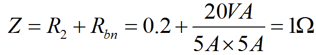 (2)計算CT銘牌容量的額定負(fù)荷值,額定負(fù)荷=額定容量/(額定電流*額定電流)。