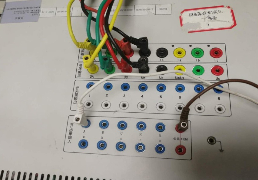 將測試儀的IA、IB、IC、IN輸出端口接入對應(yīng)端子排保護裝置側(cè)