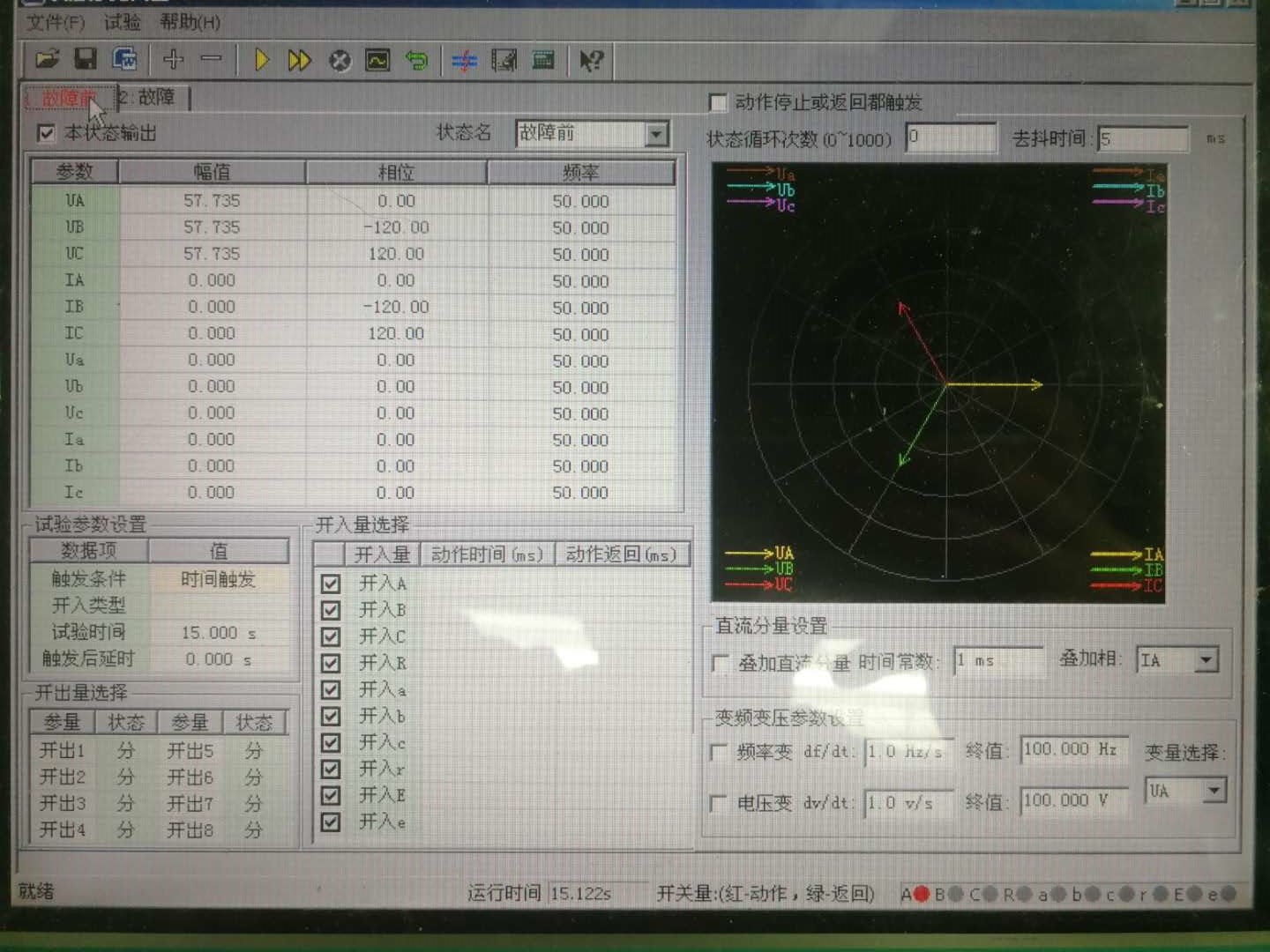 測試儀開關(guān)量輸入A端子接入裝置跳閘線圈端子口(本次選擇壓板跳閘出口)