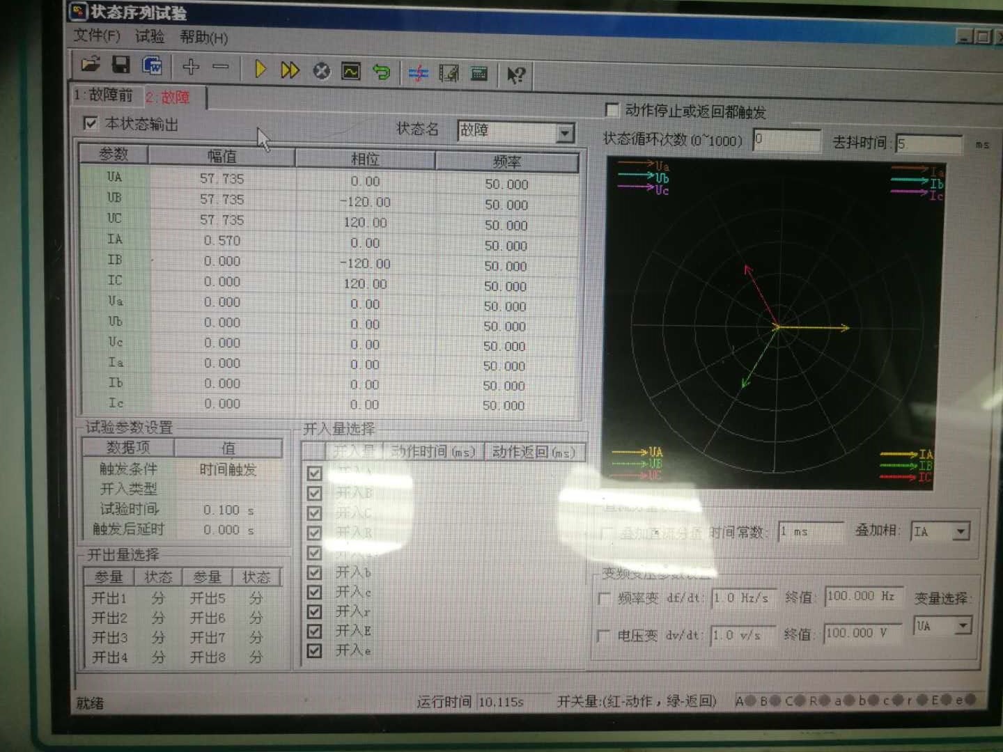 根據(jù)差動動作值1.2A計算可得,差動電流實驗值1.2*0.95=1.14A,實驗電流為0.57A。