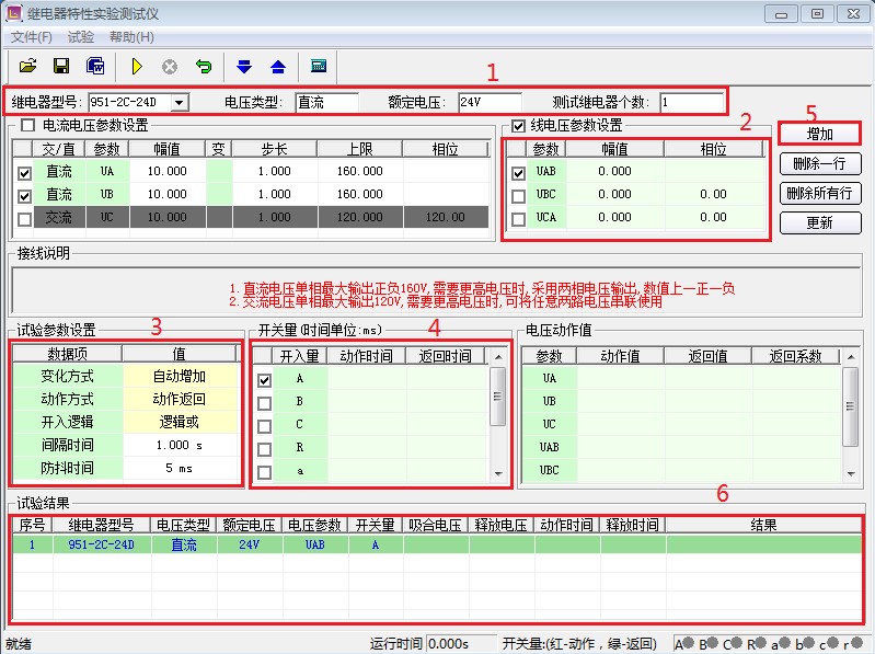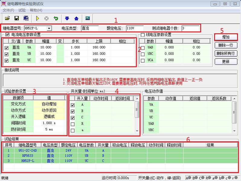1、選擇繼電器型號,在“測試?yán)^電器個數(shù)”欄輸入數(shù)量,最多為“3”。