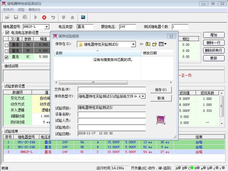 3、點擊“開始試驗”按鈕,多個繼電器將自動測試。