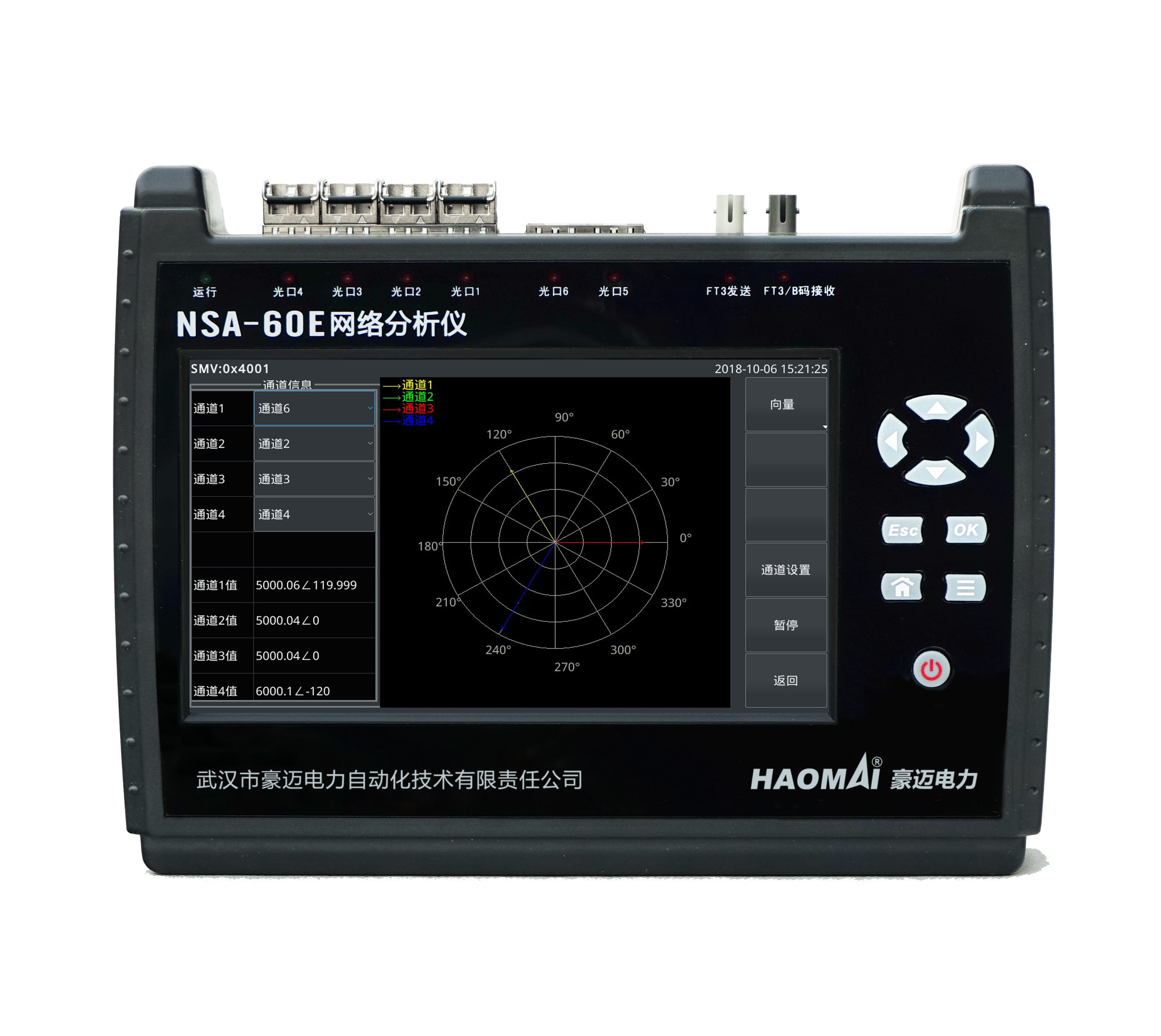 此外,NSA-60 還支持智能變電站核相與極性測試,用戶可選擇不同的通道進行核相分析,進行電壓和電流的幅值、相位、相序比對,并測試不同的通道所反映的極性情況。