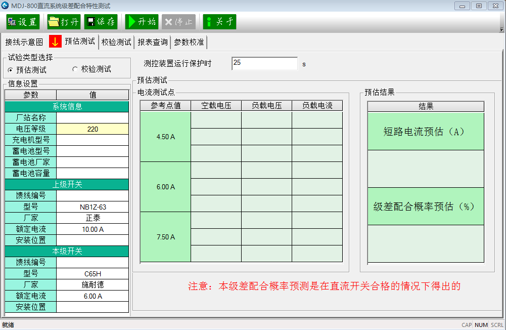 2)打開測試軟件界面,填寫預(yù)估測試相關(guān)參數(shù)信息,點(diǎn)擊“開始”進(jìn)行預(yù)估測試。