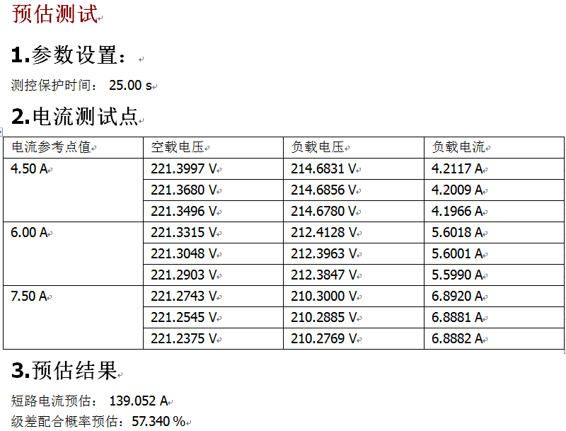 級差配合概率預(yù)估是變電站直流電源系統(tǒng)保護(hù)電器直流斷路器能否正確配合的理論保障,武漢豪邁電力通過分析直流斷路器脫扣曲線、參考《DLT 5044-2014 電力工程直流電源系統(tǒng)設(shè)計(jì)技術(shù)規(guī)范》、《GB14048.2-2008低壓開關(guān)設(shè)備和控制設(shè)備第2部分: 斷路器》等相關(guān)規(guī)程總結(jié)歸納出一種級差配合概率預(yù)估算法。 系統(tǒng)通過設(shè)置不同的測試電流值,接通所需負(fù)載電阻,多次測試后取平均值提高數(shù)據(jù)穩(wěn)定性,并計(jì)算出當(dāng)前直流斷路器末端短路預(yù)估值,預(yù)估級差配合概率。