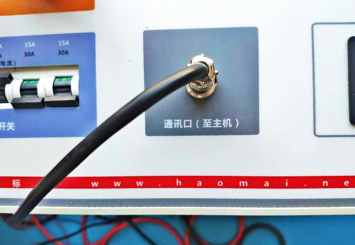 4)將測試儀和負(fù)載箱電源通電、開機(jī),不能推上測試儀和負(fù)載箱的空開。