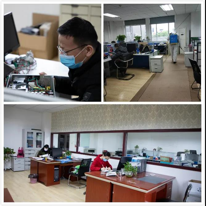 5)辦公室調(diào)整: 辦公區(qū)域重新調(diào)整了工位,確保工作間隔一米以上。 消毒組每日多次對(duì)辦公區(qū)域和公共區(qū)域進(jìn)行全方位、無死角消毒,及時(shí)開窗通風(fēng)保證空氣流通。