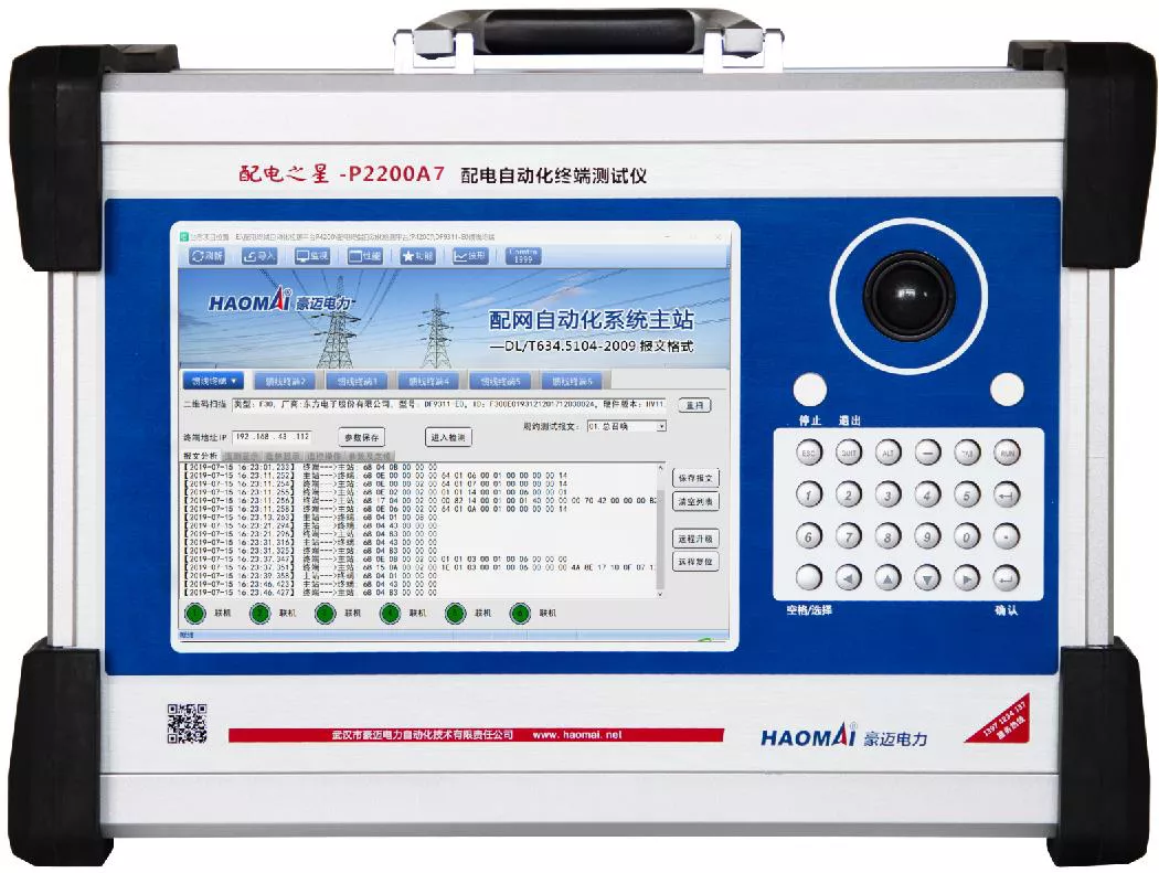 ?隨著我國經(jīng)濟的快速發(fā)展,對配網(wǎng)自動化提出了更高的要求,為了保證配網(wǎng)安全、可靠、高效運行,需要定期對各類配電自動化終端設備進行通信規(guī)約、功能和性能檢測。 武漢豪邁電力遵照國網(wǎng)、南網(wǎng)關(guān)于便攜式配網(wǎng)測試儀的功能和技術(shù)指標要求,結(jié)合運維人員現(xiàn)場使用需求,研發(fā)設計了配電之星-P2200A7 配電自動化終端測試儀。 該設備是一款內(nèi)置大容量鋰電池、充電器的便攜式測試儀,在不接市電的情況下,可完成最高4相交流電壓264V,4相交流電流10A同時輸出能力的測試試驗。 在充滿電的情況下,可以保證4相交流電壓220V和4相交流3A持續(xù)輸出4h、間斷輸出8h的工作能力。 測試儀尺寸略大于A4大小,重量不足12kg,輕巧易攜帶,非常適用于測試地點取電不方便且不固定的應用場景。