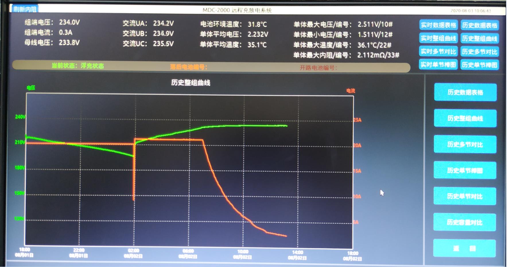 △ 蓄電池遠(yuǎn)程核容放電、充電過程曲線