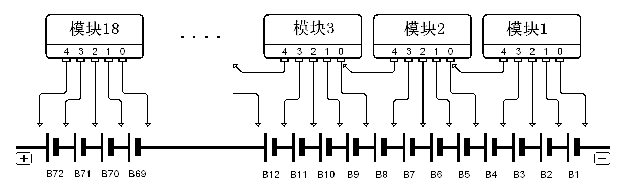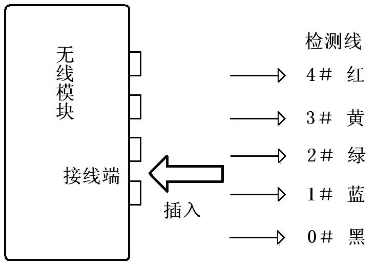 模塊側(cè)面有5個(gè)插口端,可插入5個(gè)檢測(cè)線夾,依次命名為0#端(黑)、1#端(藍(lán))、2#端(綠)、3#端(黃)、4#端(紅)。
