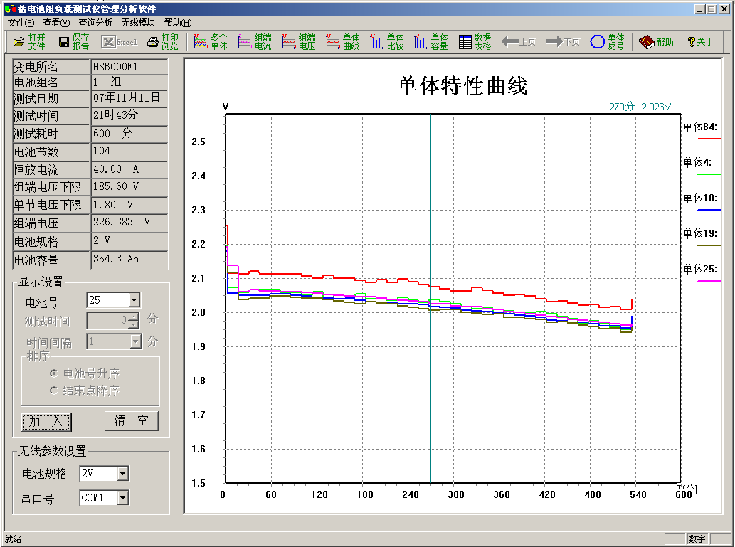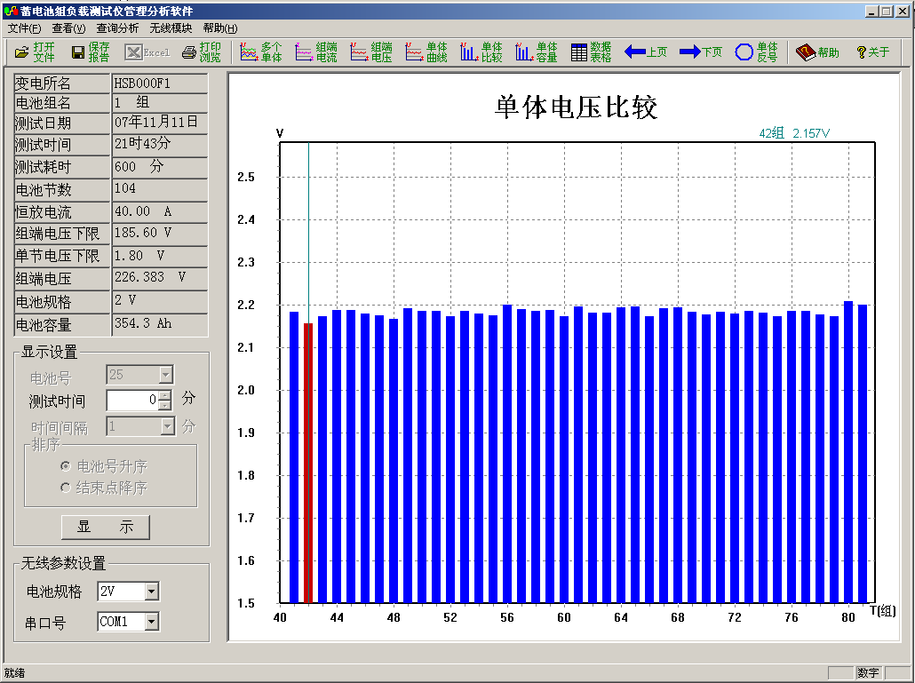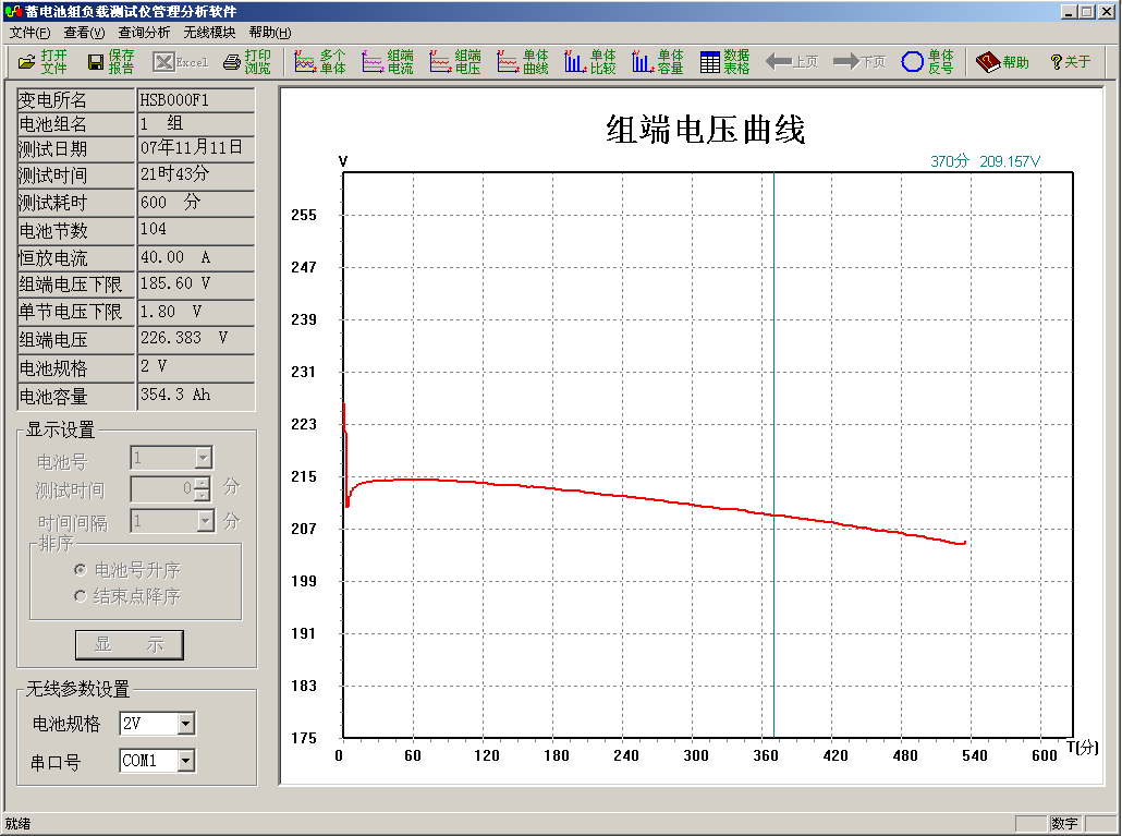 蓄電池的充放電試驗(yàn)可對(duì)電池內(nèi)部進(jìn)行活化,充放電后蓄電池組的電壓更加均衡,搭配蓄電池單體無線檢測(cè)模塊可在放電和充電過程中用無線通信方式監(jiān)測(cè)每節(jié)電池的電壓和放電曲線,并可在任意某節(jié)電池低于下限時(shí)自動(dòng)報(bào)警并暫停放電以及繼續(xù)放電。