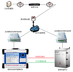 為解決上述問題,武漢豪邁研發(fā)了以配電主站為中心和多臺配電終端測試儀融合集成一體化的智能機器人1+N模式測試平臺。 配電主站與各區(qū)域配電之星-P2200 配電自動化終端測試儀(4G版)通過認證4G安全加密無線建立鏈路實現(xiàn)數(shù)據(jù)交互,配電主站接受配電之星-P2200命令實現(xiàn)對待調(diào)終端報文過程的感知并轉(zhuǎn)發(fā)報文至測試儀,配電之星-P2200通過“三遙”點表編制測試邏輯方案,自動逐項驅(qū)動測試儀模擬量組合輸出和位置變化,實現(xiàn)終端性能和功能以及FA功能的驗證并出具結(jié)論。