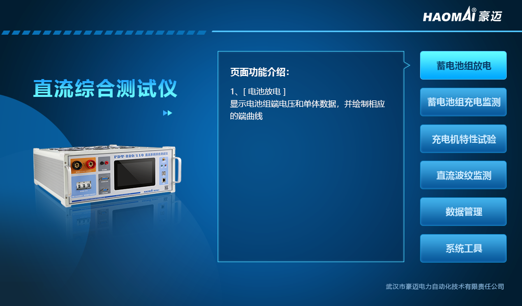 蓄電池組是變電站直流系統(tǒng)的核心,用以保證變電站在交流失電的情況下各種直流負(fù)荷及事故照明的供電。 按照規(guī)程定期對蓄電池組開展放電容量測試是準(zhǔn)確驗(yàn)證蓄電池組性能的有效方式。 武漢豪邁電力FDT-220/110 直流系統(tǒng)綜合測試儀集蓄電池組放電、充電機(jī)紋波系數(shù)、穩(wěn)壓穩(wěn)流精度特性測試于一體,可自動連續(xù)調(diào)控放電電流,實(shí)現(xiàn)定電流恒流放電。