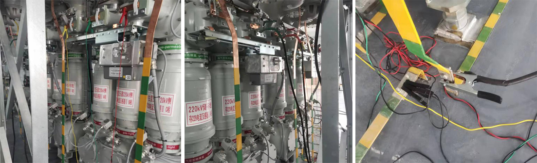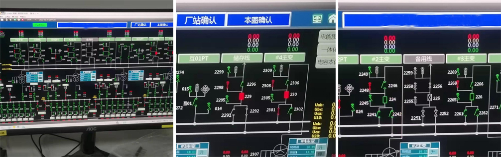 將HTV-6000 三相數(shù)字式智能高電壓源接至主變#4的220kV側(cè),接在2308開關(guān)的上端,2308斷開,合上230斷路器、2301開關(guān),將電壓接到220kV的1母線上,合上互01PT的開關(guān),使其過母線的PT,即可在保護(hù)裝置上查到二次電壓值。將HTA-3300 三相數(shù)字式智能大電流源接到儲存線,接到2298開關(guān)的上端,合上2298、229、2301斷路器或開關(guān),將電流接到220kV的2母線上,如測試的是#3號主變高壓側(cè)220kV間隔,則合上2268、226、2262,使電流從存儲線流到#3號主變高壓側(cè)間隔上,形成回路,即可在保護(hù)裝置上查到此間隔的二次電流值。