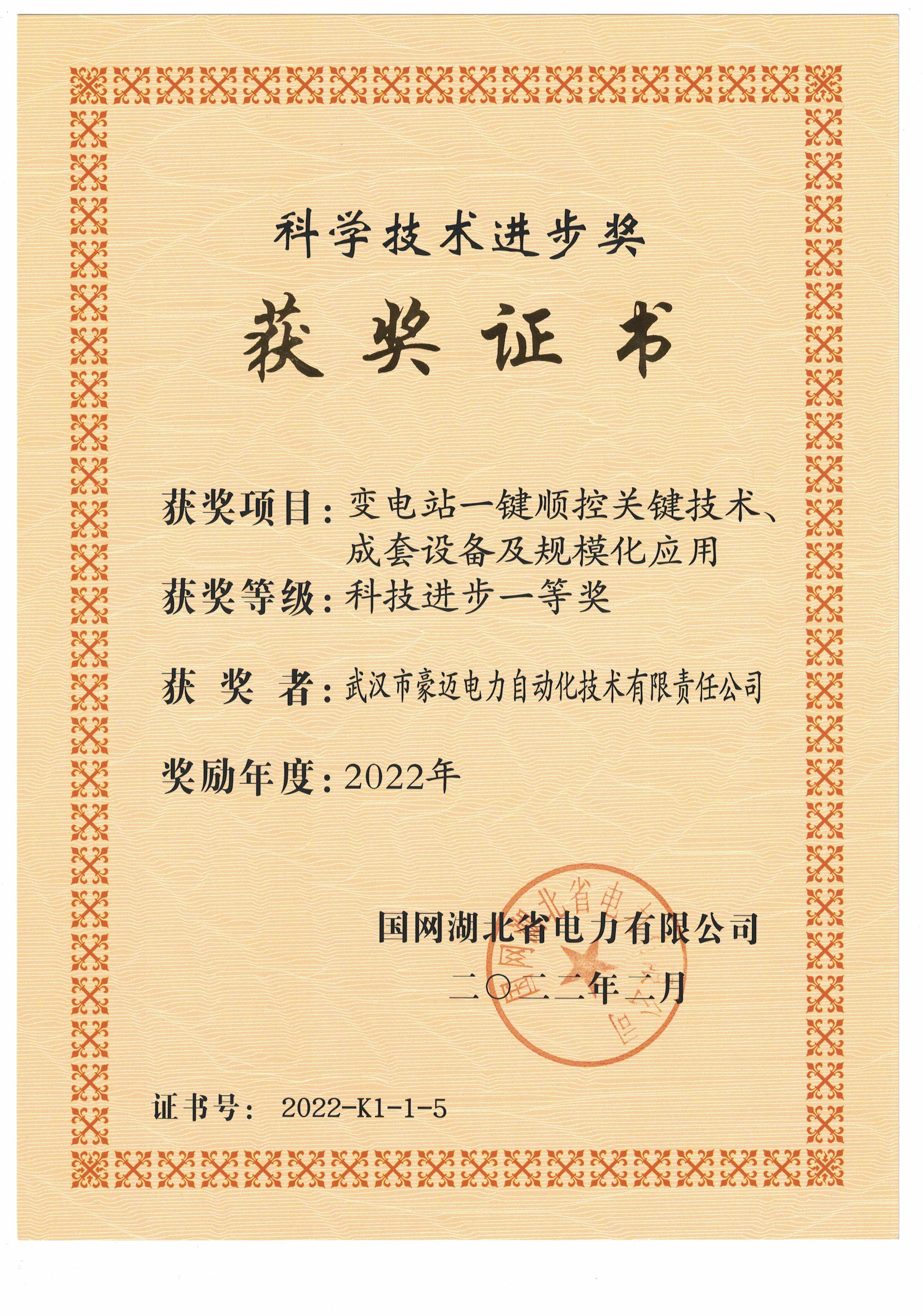 近日,武漢豪邁參與的創(chuàng)新項(xiàng)目《變電站一鍵順控關(guān)鍵技術(shù)、成套設(shè)備及規(guī)?;瘧?yīng)用》經(jīng)國網(wǎng)湖北省電力有限公司評審,榮獲國網(wǎng)湖北省電力科技進(jìn)步一等獎。