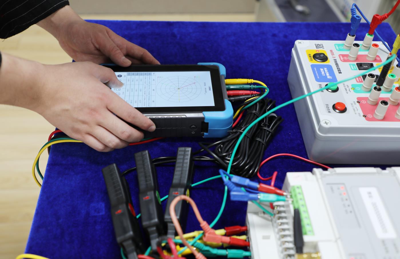 現(xiàn)場參觀環(huán)節(jié),能效測評中心領(lǐng)導(dǎo)在硬件工程師王瑜的協(xié)助下,使用配電之星-P2200 配電自動化終端測試儀進(jìn)行試驗(yàn)操作,設(shè)備測試功能強(qiáng)大,全自動一鍵式操作,測試效率高,贏得各位領(lǐng)導(dǎo)一致稱贊。