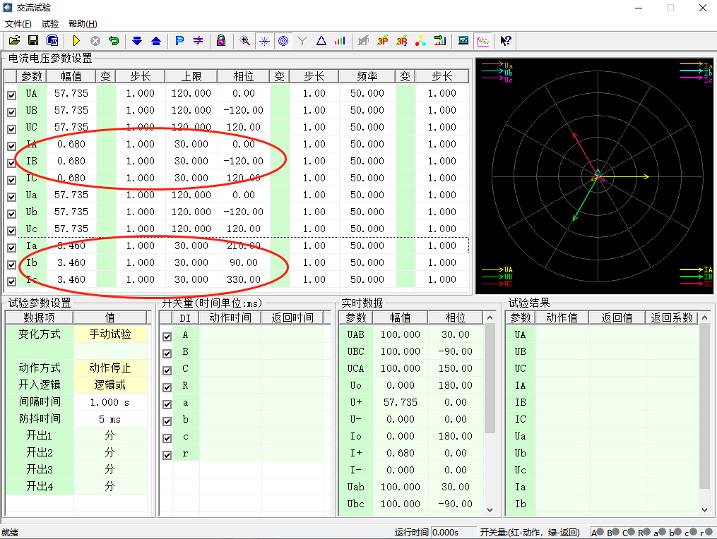 試驗(yàn)中保護(hù)裝置會一直動作,記錄動作報文。
