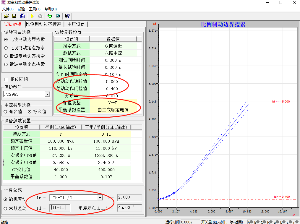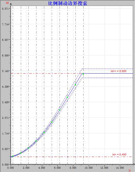 RCS-985A發(fā)變組保護(hù)比率差動動作特性圖的前段是一段拋物線,后段是一條帶斜率的直線,下面介紹邊界曲線的搜索方法。