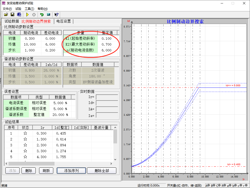 以上參數(shù)設(shè)置完成后開始試驗(yàn),繼保之星-1600S 將自動雙向搜索動作邊界,在動作區(qū)與制動區(qū)的邊界上打上點(diǎn)。