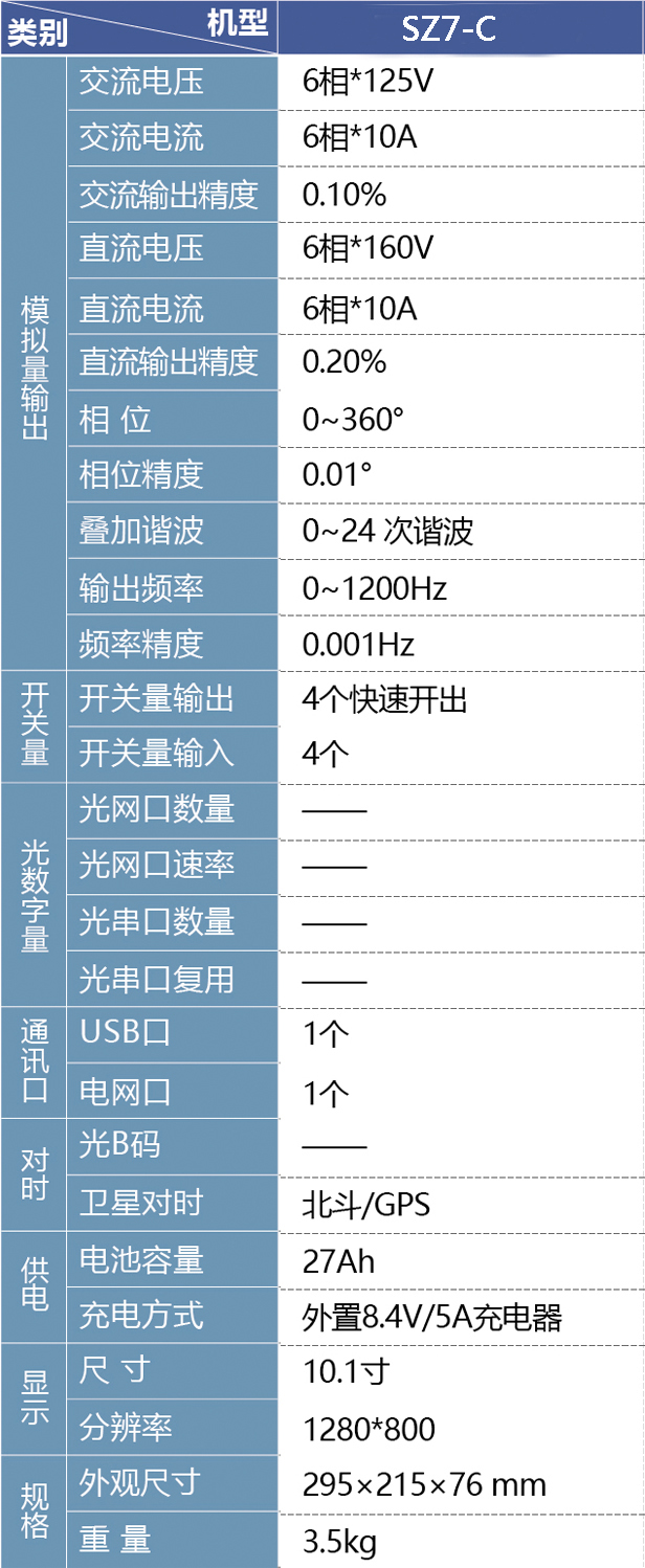 SZ7-C 二次儀表是具備6相電壓6相電流高精度輸出,可輸出高精度可控電流與電壓,主要用于變電站二次系統(tǒng)保護、測控、合并單元、智能終端等設(shè)備功能性能測試。該設(shè)備支持北斗、GPS、B碼對時,多機同步輸出。