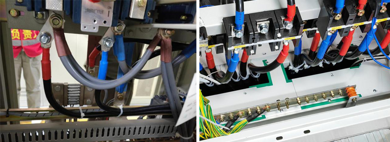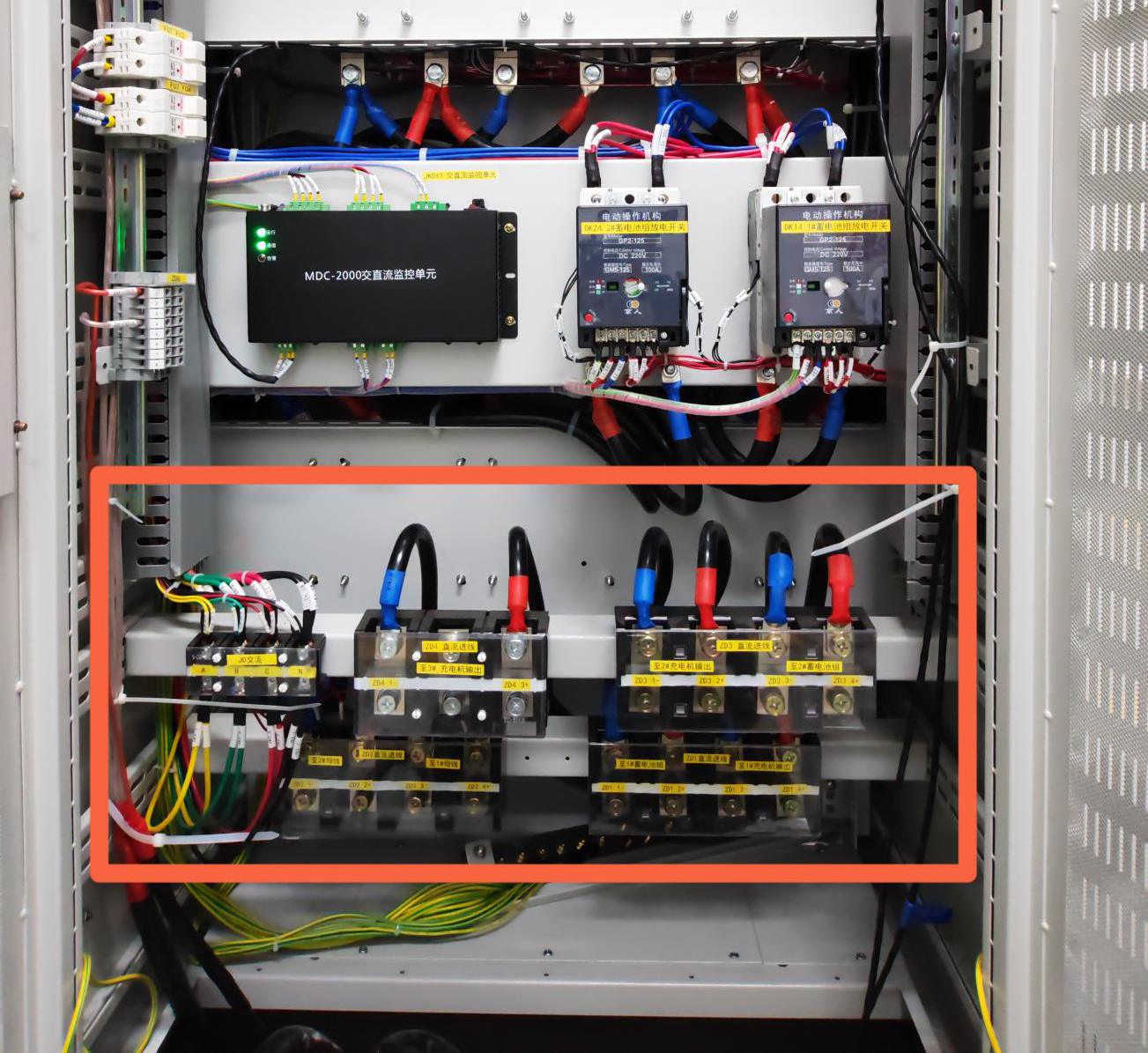 屏柜電纜接線 : 裝置內部接線電纜包含: #1、#2、#3號充電機,#1、#2號蓄電池組,#1、#2號母線共計14根動力電纜,一根至饋電屏交流3相電纜,一根蓄電池室通信電纜以及屏柜直流工作電源和上送至后臺網(wǎng)線。