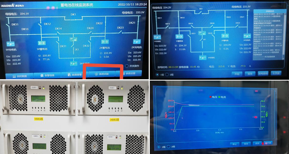 放電試驗時點擊“系統(tǒng)試驗”-“開始”,系統(tǒng)會自動檢測開關位置和直流系統(tǒng)狀態(tài)量。 試驗時開關自動操作無須人工干預,有多條開關操作互鎖邏輯,手動操作開關時,如果直流系統(tǒng)狀態(tài)不符合操作開關情況則開關不動作,確保母線上負載供電可靠性,避免出現(xiàn)倒閘誤操作情況。