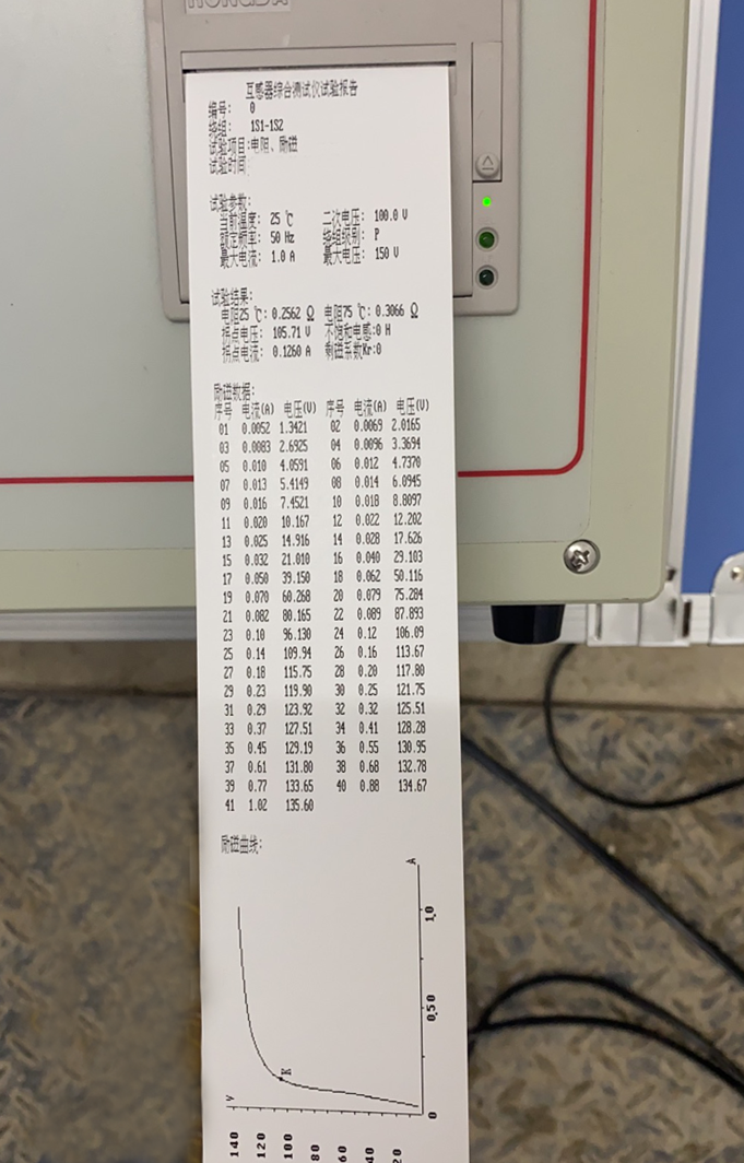 試驗(yàn)結(jié)束后打印試驗(yàn)報(bào)告,將測(cè)試儀試驗(yàn)數(shù)據(jù)與互感器出廠數(shù)據(jù)進(jìn)行比對(duì),判斷該CT/PT是否合格。