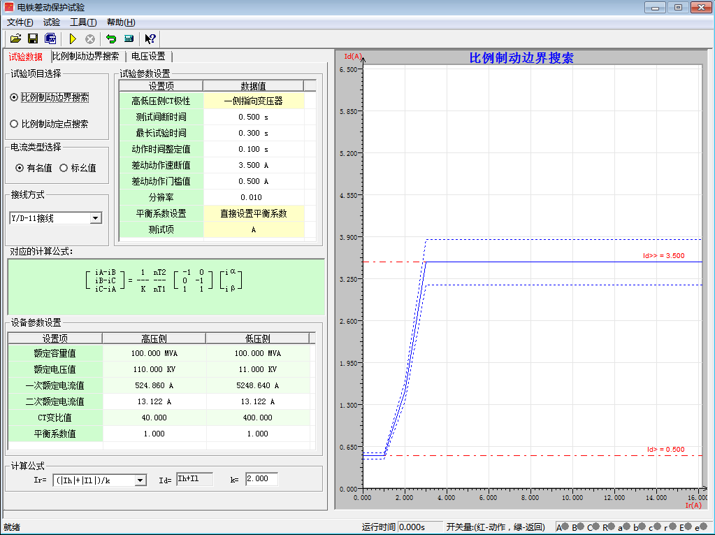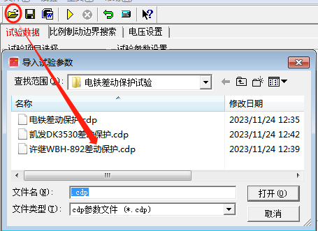 進(jìn)入電鐵差動(dòng)保護(hù)曲線搜索 專 用試驗(yàn)界面。