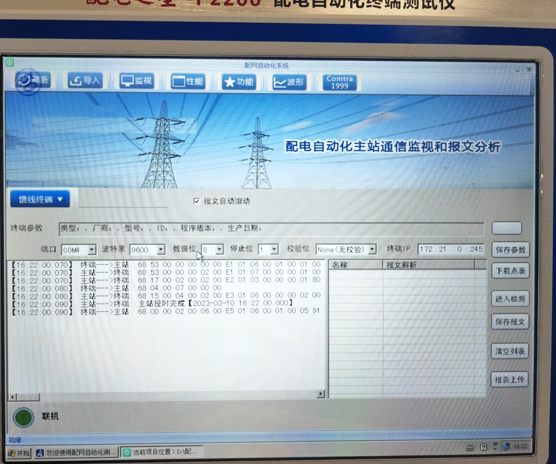 下方對(duì)話框出現(xiàn)鏈路通訊報(bào)文正常,并收到主站授時(shí)完成,即可確定主站。