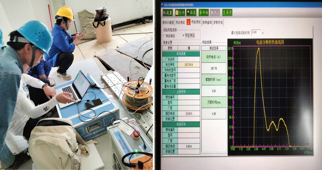 目前變電站的直流饋電網(wǎng)絡(luò)大多采用樹狀結(jié)構(gòu),從蓄電池組到站內(nèi)用電設(shè)備,一般經(jīng)過三級(jí)配電,每級(jí)配電大多采用直流斷路器作為保護(hù)電器; 在直流系統(tǒng)運(yùn)行過程中,當(dāng)上下級(jí)直流斷路器保護(hù)動(dòng)作特性不匹配時(shí),下級(jí)用電設(shè)備出現(xiàn)短路故障就會(huì)引起上一級(jí)直流斷路器的越級(jí)跳閘,進(jìn)而引起其他饋電線路的斷電事故。 MDJ-800 直流系統(tǒng)級(jí)差配合特性測(cè)試儀可測(cè)試變電站直流回路各級(jí)直流斷路器保護(hù)動(dòng)作級(jí)差配合的正確概率,并根據(jù)測(cè)試結(jié)果報(bào)表來校驗(yàn)各級(jí)直流斷路器的級(jí)差配合選型。 此次在變電站對(duì)3A、4A、6A三種規(guī)格的最末級(jí)直流空開進(jìn)行測(cè)試,預(yù)設(shè)短路電流,直接進(jìn)行短路試驗(yàn)校驗(yàn)級(jí)差配合的選擇性,根據(jù)帶載小電流預(yù)估支路的短路電流,查表計(jì)算級(jí)差配合概率預(yù)估值,結(jié)合試驗(yàn)數(shù)據(jù)報(bào)告對(duì)動(dòng)作電流、弧前時(shí)間、滅弧時(shí)間以及電流分?jǐn)鄤?dòng)作曲線等結(jié)果進(jìn)行分析,大大縮短了操作時(shí)間,保障了直流系統(tǒng)運(yùn)行可靠性。