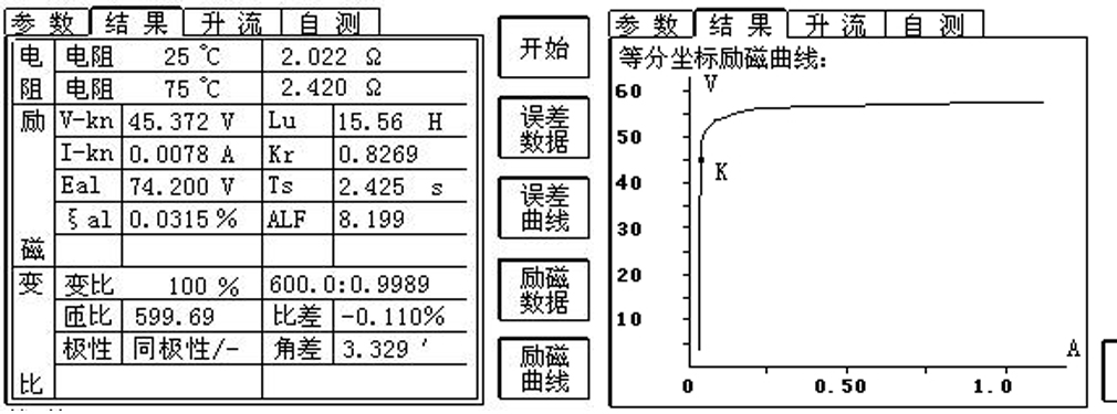 此次使用CTP-220 互感器測試儀完成所有互感器綜合特性測試,該款測試儀采用最新方波法技術,測試時間較傳統(tǒng)測試儀大約縮短50%,可完成保護類、計量類、TP類等各類型CT的勵磁特性、變比、極性、二次繞組電阻、二次負荷、比差以及角差等測試,可進行各類PT電磁單元的特性測試,能應對拐點高達30kV的CT測試,接線簡單,一鍵測試,高效穩(wěn)定。 設備自動給出拐點電壓/電流、10%(5%)誤差曲線、準確限值系數(shù)(ALF)、儀表保安系數(shù)(FS)、二次時間常數(shù)(Ts)、剩磁系數(shù)(Kr)、飽和及不飽和電感等參數(shù),軟件自動進行數(shù)據(jù)分析,并生成測試報告。
