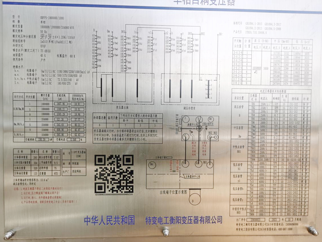 △ 主變參數(shù)銘牌