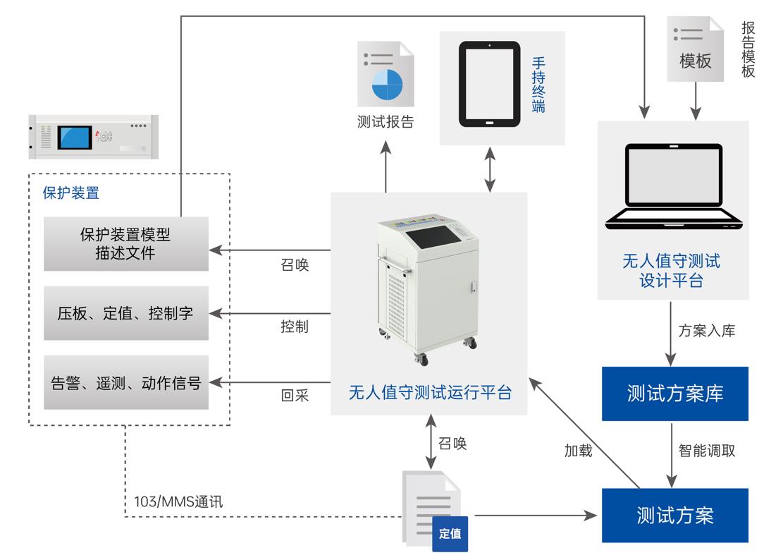 自動測試,無人值守,和保護裝置通訊采集數(shù)據(jù),形成閉環(huán)