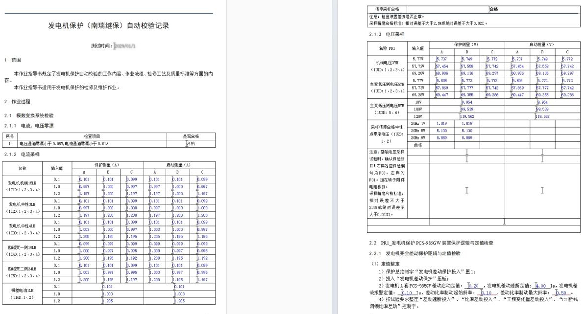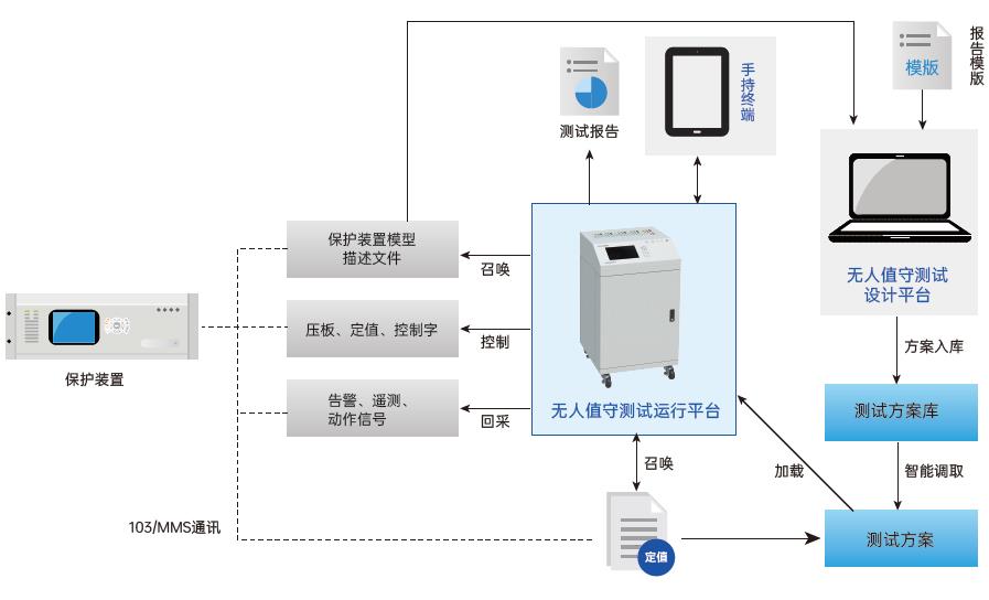 電廠繼電保護(hù)自動(dòng)測(cè)試平臺(tái) 建立標(biāo)準(zhǔn)化測(cè)試流程庫(kù),配置高精度功放輸出,搭配航插接口,可實(shí)現(xiàn)保護(hù)裝置一鍵閉環(huán)測(cè)試。 測(cè)試過(guò)程不換線,無(wú)人化值守,自動(dòng)生成定制化模板報(bào)告,測(cè)試時(shí)間從原來(lái)的一周左右縮短至8小時(shí),測(cè)試用例覆蓋率提升至98%以上,運(yùn)用閉環(huán)測(cè)試技術(shù)實(shí)現(xiàn)毫秒級(jí)動(dòng)作特性校驗(yàn)。 該創(chuàng)新模式的全面應(yīng)用,實(shí)現(xiàn)保護(hù)裝置定期檢驗(yàn)由經(jīng)驗(yàn)驅(qū)動(dòng)到數(shù)據(jù)驅(qū)動(dòng)的轉(zhuǎn)變,測(cè)試效率較傳統(tǒng)方式提升5-8倍。
