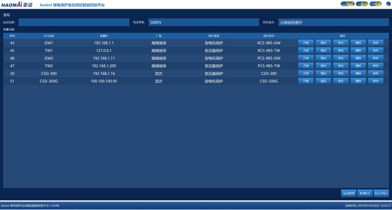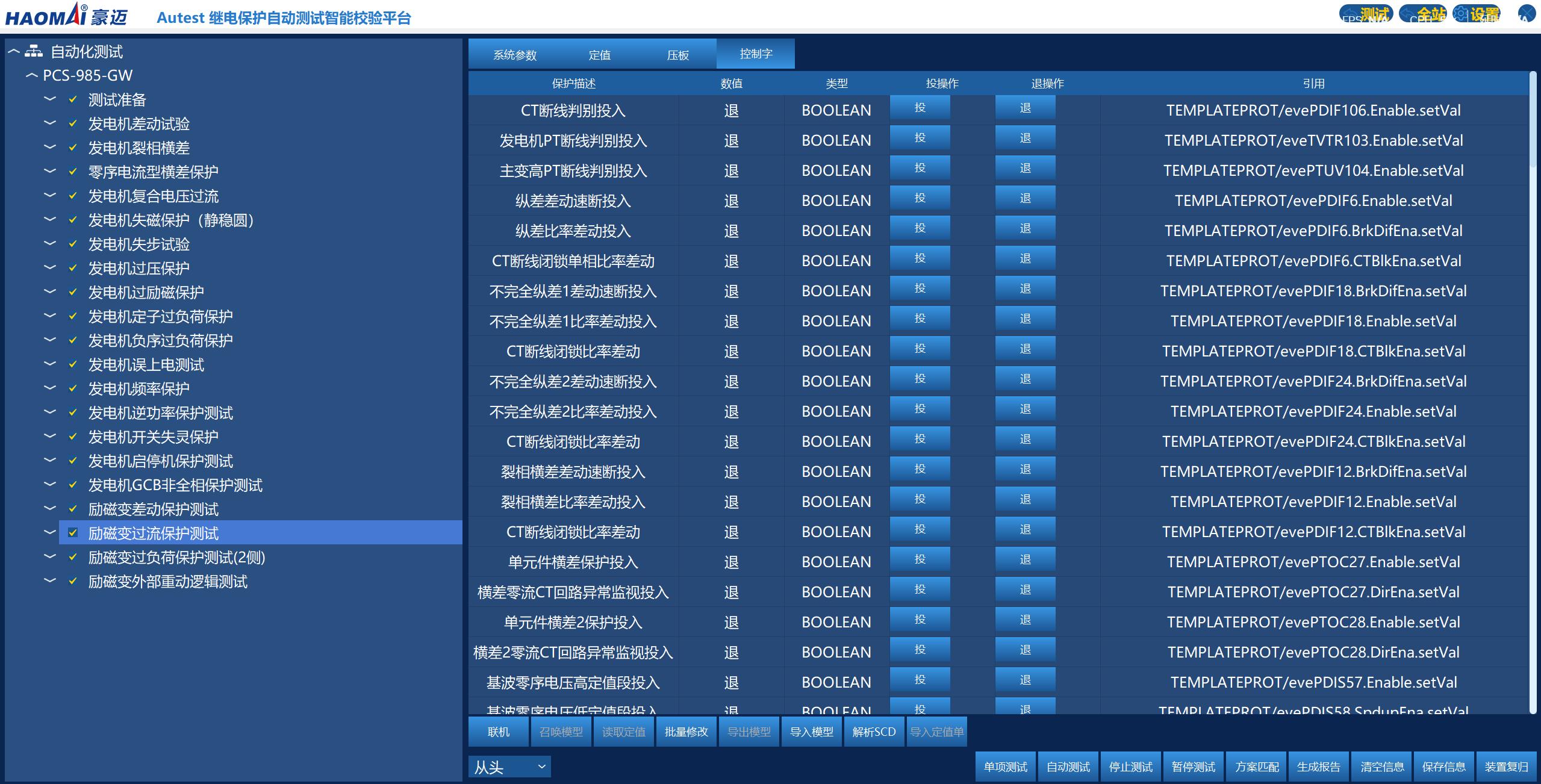 3)打開(kāi)自動(dòng)測(cè)試程序,召喚裝置定值,點(diǎn)擊方案匹配按鈕,進(jìn)行測(cè)試方案實(shí)例化。