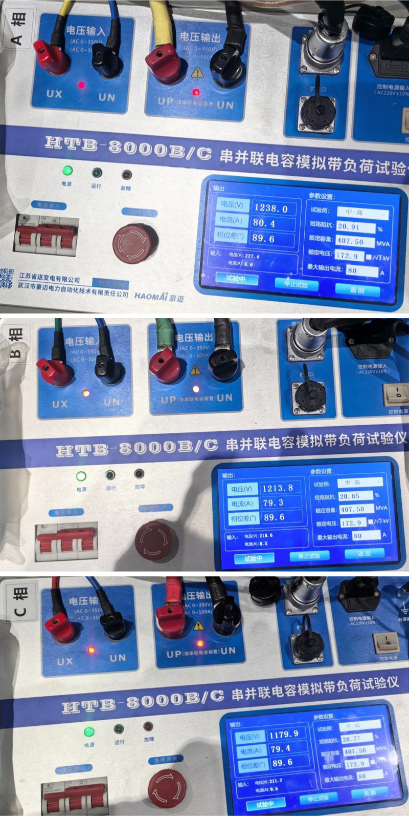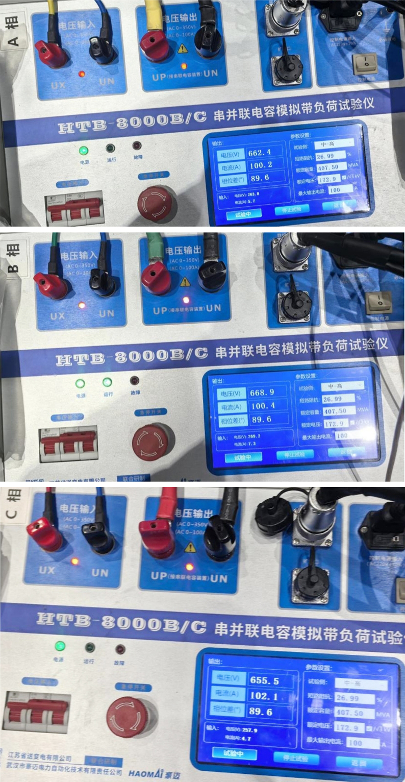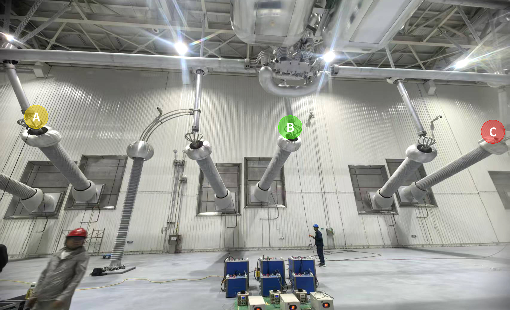 Y/Y方式閥側(cè)注流與Y/D 方式閥側(cè)注流區(qū)別 :Y/Y方式閥側(cè)為星型接線,Y/D方式閥側(cè)為三角形接線即C相首端與A相尾端相連,C相尾端與B相首端相連,B相尾端與A相首端相連。該方式下若 裝置 三相直接夾換流變閥側(cè) A、B 、C三相,則回路阻抗會與計算值不一致,解開B與Cn、A與Bn引線,將閥廳三角形接線改為星型接線。將 裝置 A、B 、C對應(yīng)夾到閥側(cè)A、B 、C三相,N線夾子則夾換流變各相N,相當(dāng)于單相通流加壓方式同時施加三次, 無需考慮裝置三相平衡問題。極2低閥廳注流方式與極1低閥廳一致,可參考以上方法 。
