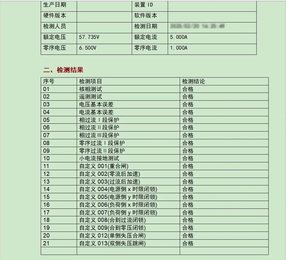 通訊建立后點擊“進入檢測”,再點擊“開始測試”即開始一鍵自動測試,若測試過程中存在個別未完成項目,可等待自動測試完成后進行單相測試,所有測試全部完成后,點擊生成報告。