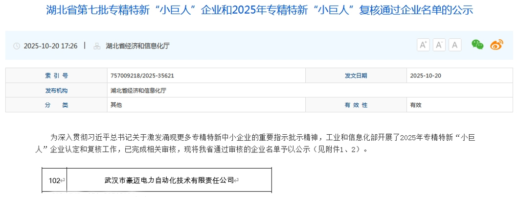 下一步,武漢豪邁將充分發(fā)揮“小巨人”企業(yè)的示范引領作用,持續(xù)加大研發(fā)投入,強化創(chuàng)新能力,向著更高發(fā)展目標穩(wěn)步邁進,為推動電力行業(yè)高質量發(fā)展貢獻更大力量。