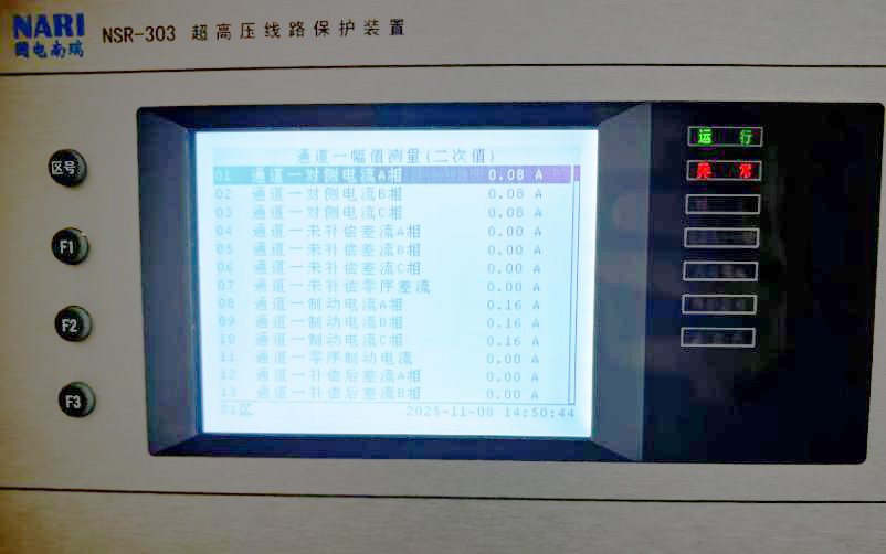待電流升起來后在保護(hù)裝置查看采樣信息。